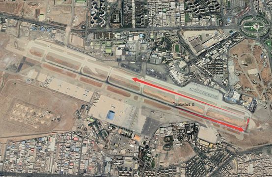 我們從谷歌地球上下載伊朗德黑蘭霍梅尼機(jī)場的布局圖,可以看到,下方是機(jī)場停機(jī)區(qū),上方是機(jī)場跑道,中間是滑行道,從機(jī)場布局圖,我們可以看到這架烏克蘭波音737-800飛機(jī)的機(jī)場運(yùn)行軌跡:如紅色箭頭所示,飛機(jī)先從停機(jī)坪緩慢滑行到滑行道上排隊(duì),最終從飛機(jī)跑道從東向西起飛,飛機(jī)跑道長度4公里,這架波音飛機(jī),正常起飛滑跑在2公里左右,跑道足夠長,可以起降世界最大的波音747和空客A380一類巨型客機(jī),這是伊朗的首都機(jī)場,跑道足夠長,停機(jī)坪面積足夠大,召開國際會(huì)議,迎接世界各國首腦訪問所必須。